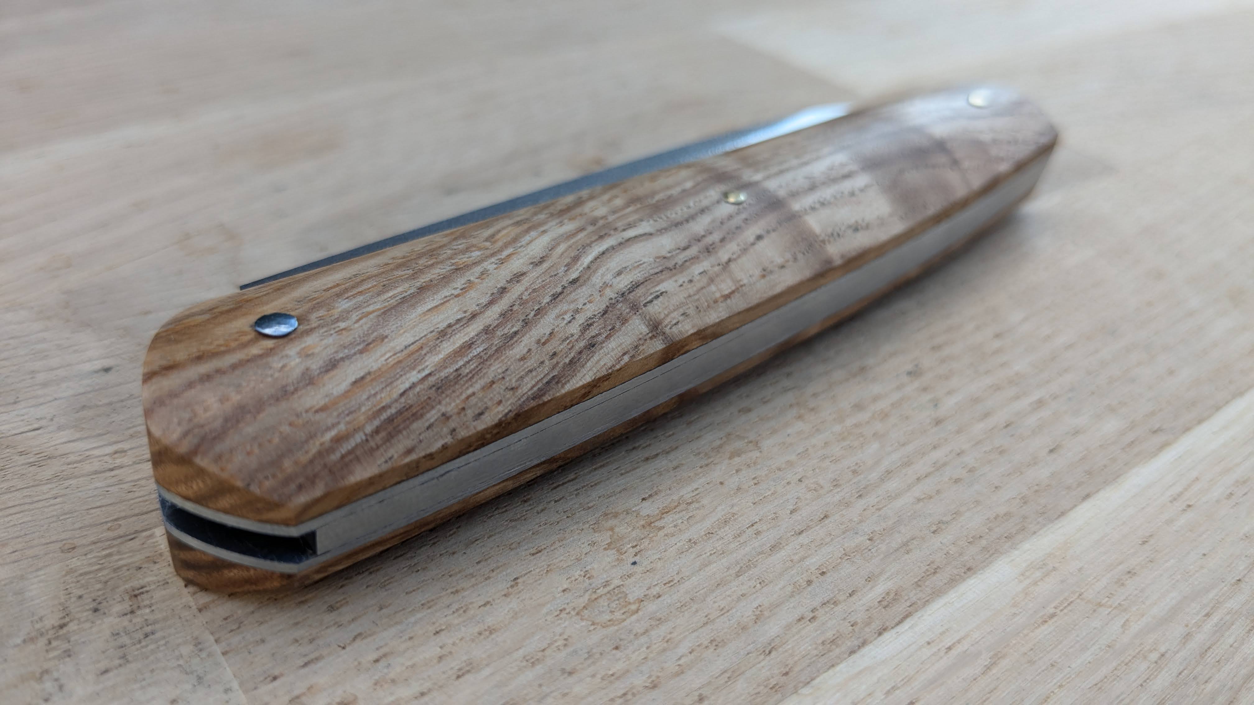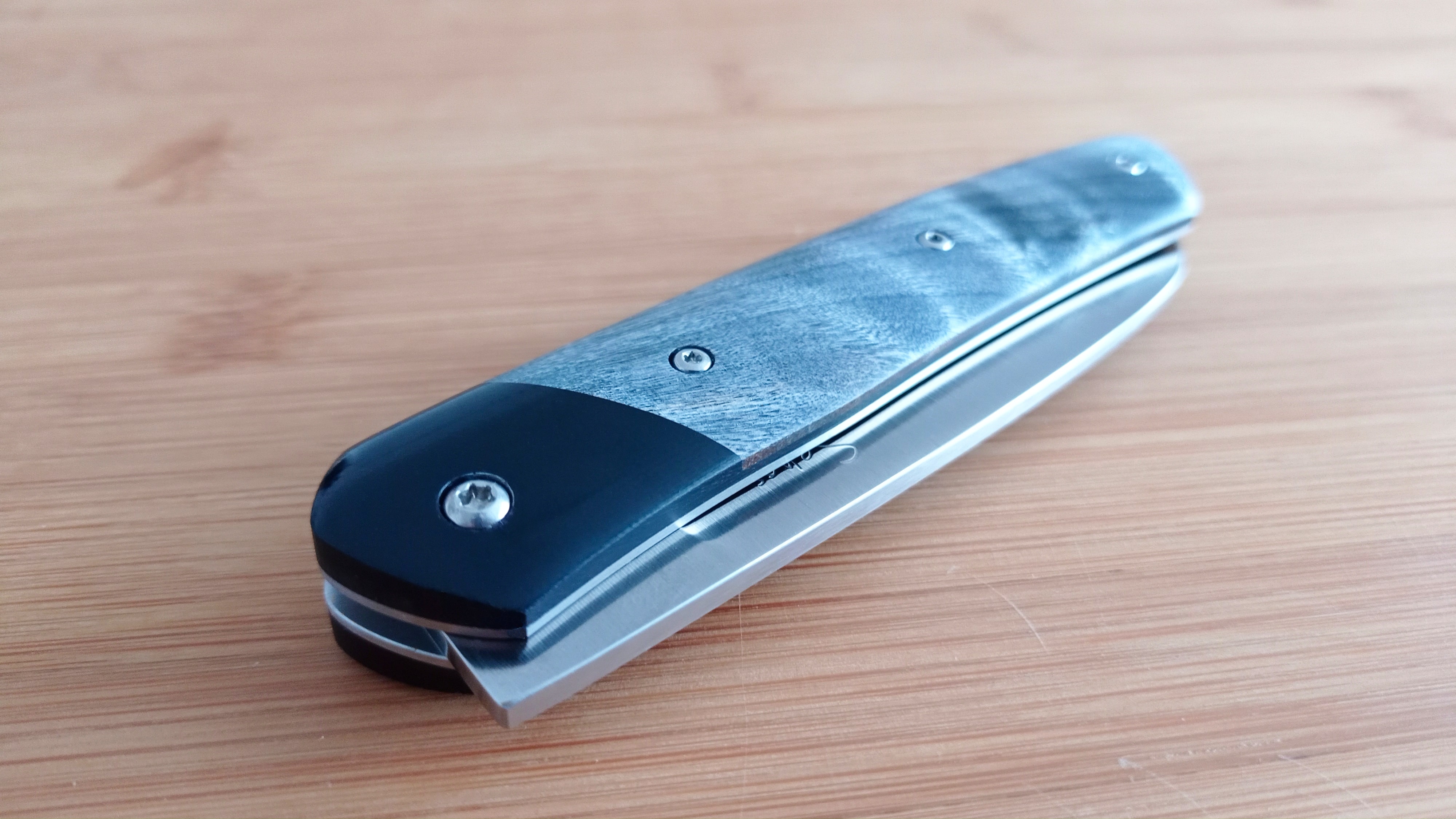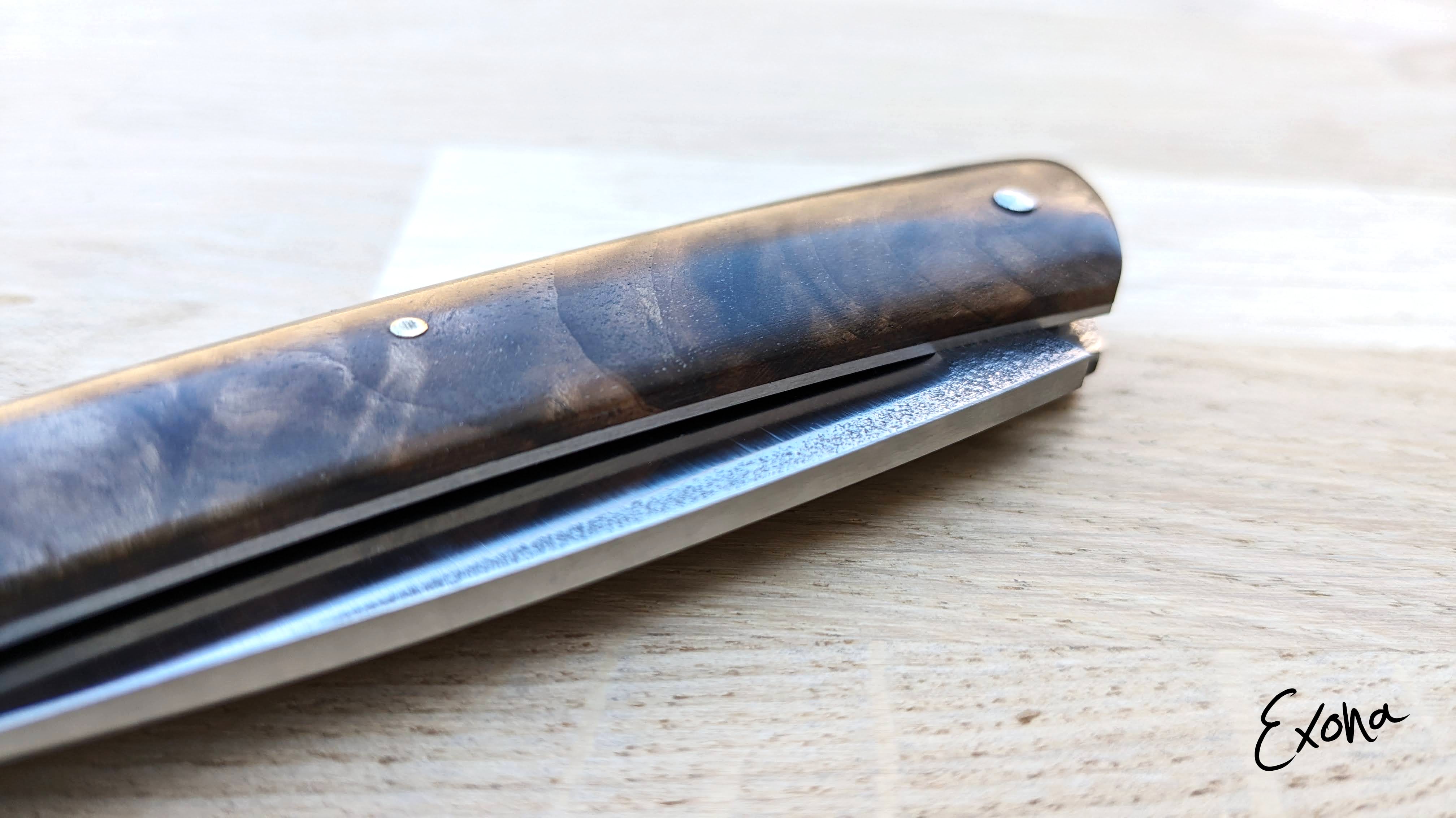 Je propose par défaut mes couteaux en cran forcé, une mécanique classique et fiable.