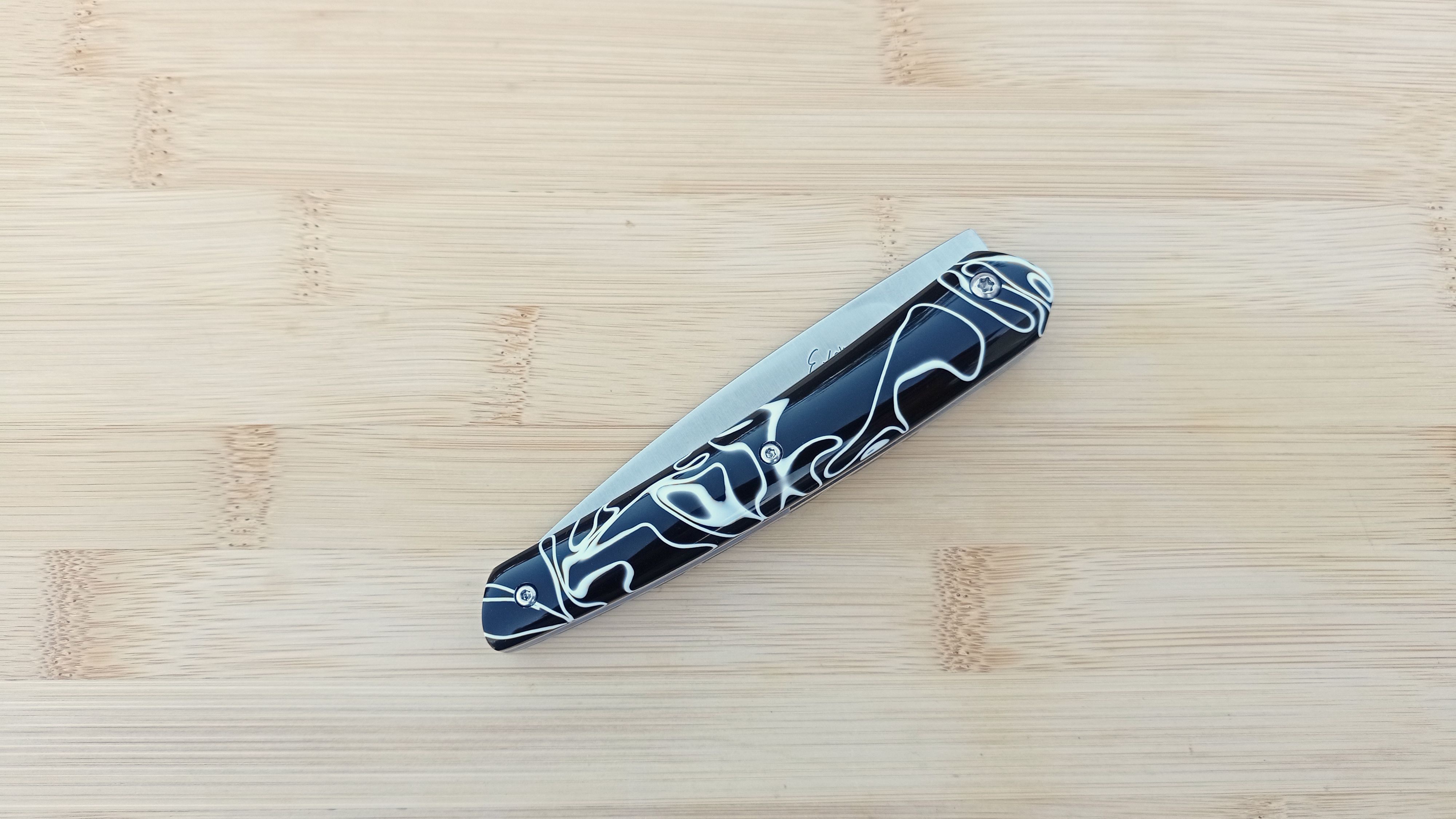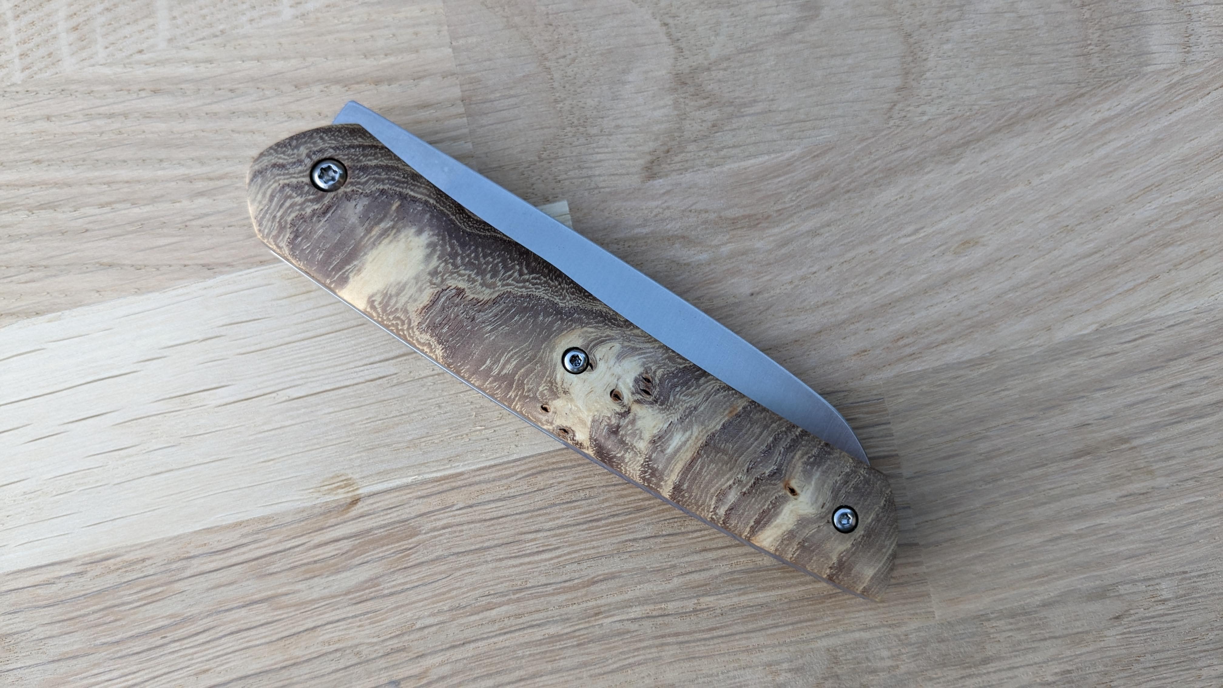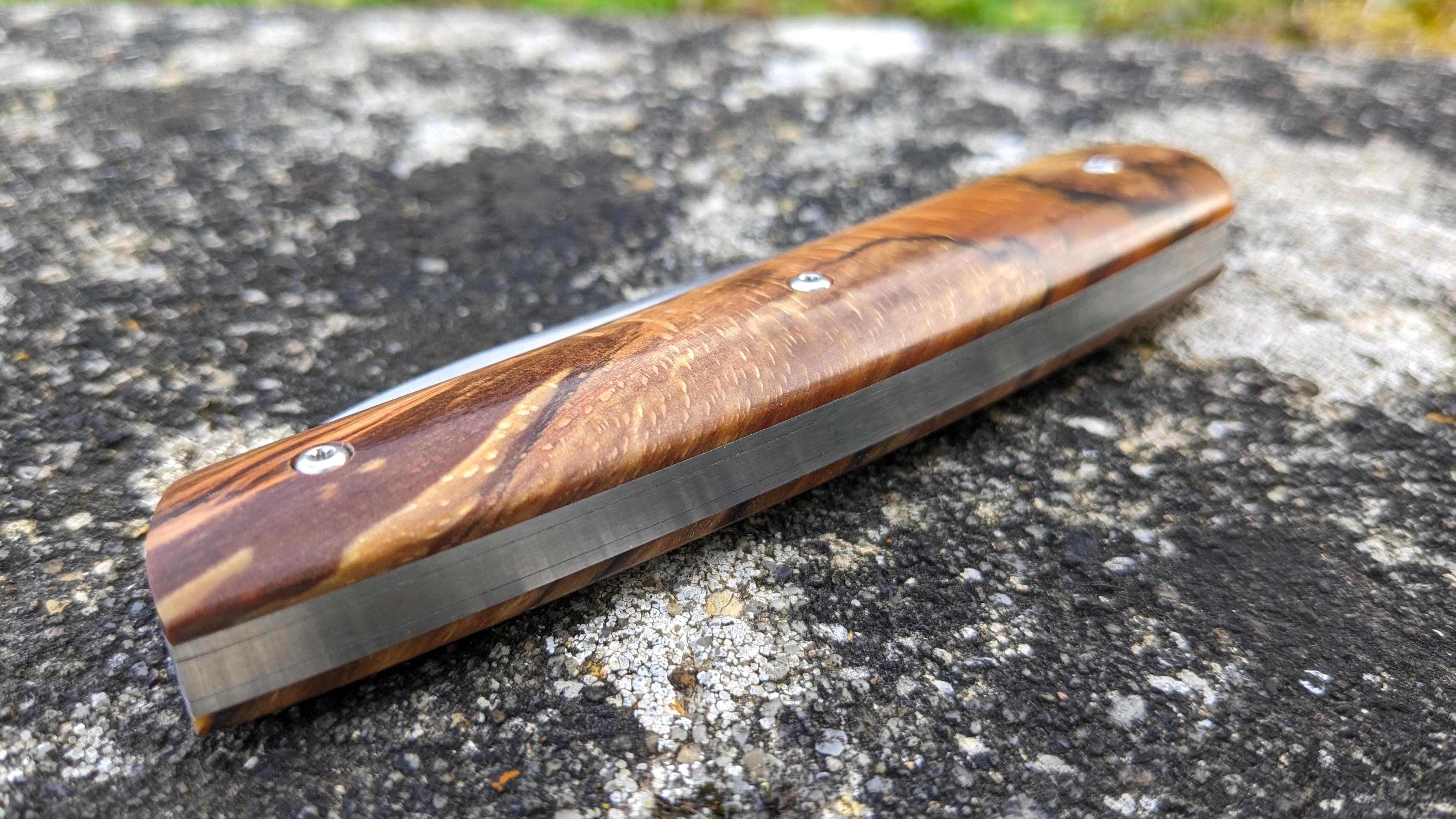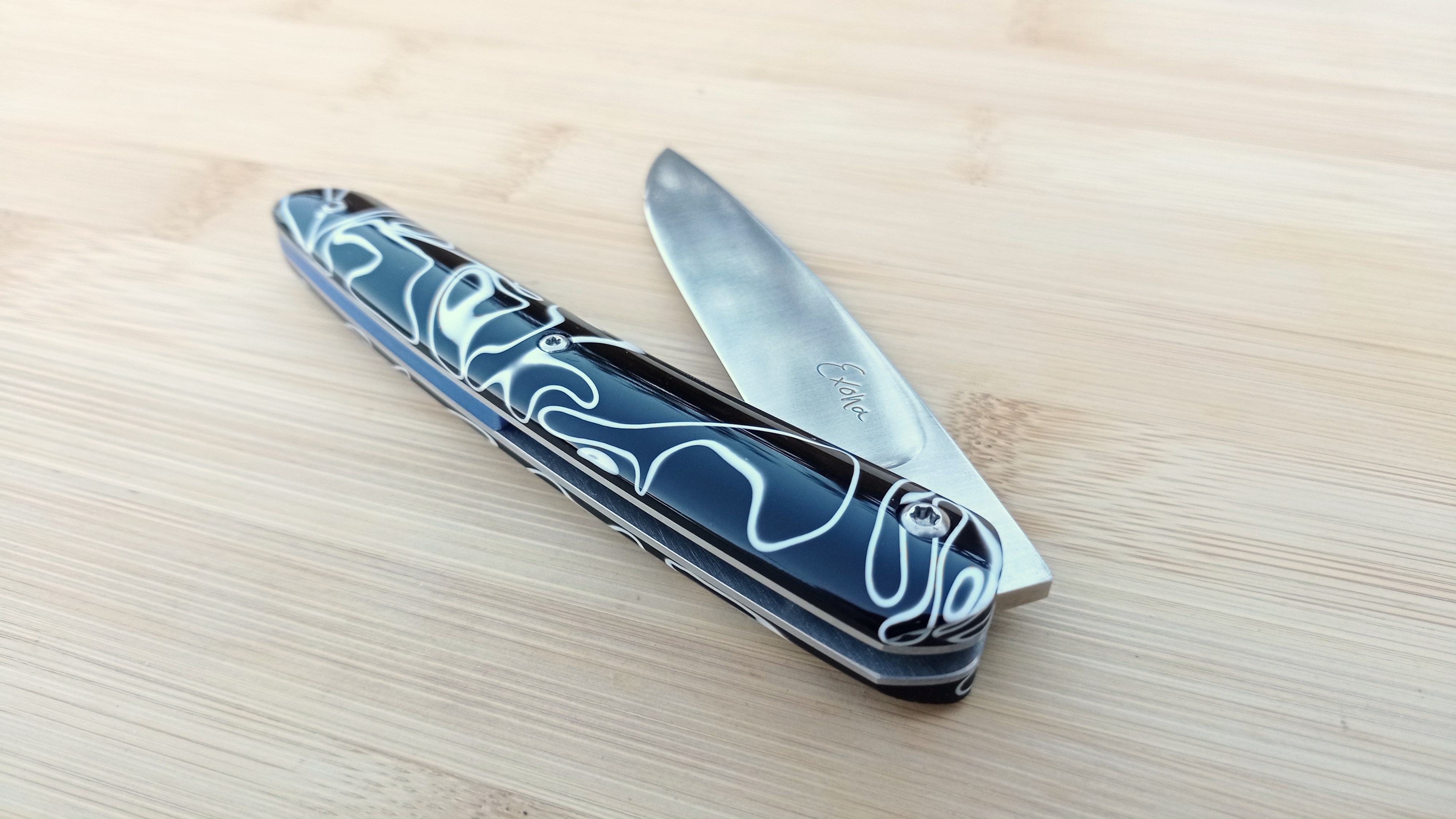 Je propose par défaut mes couteaux en cran forcé, une mécanique classique et fiable.