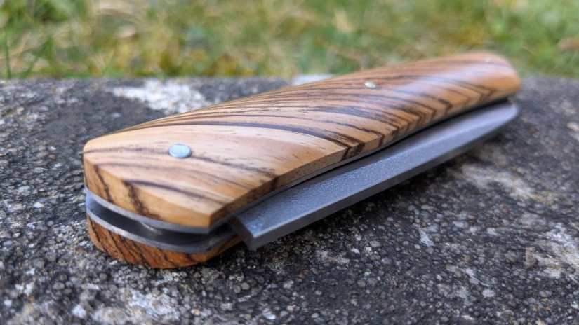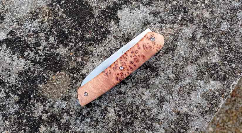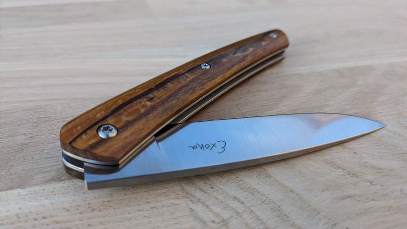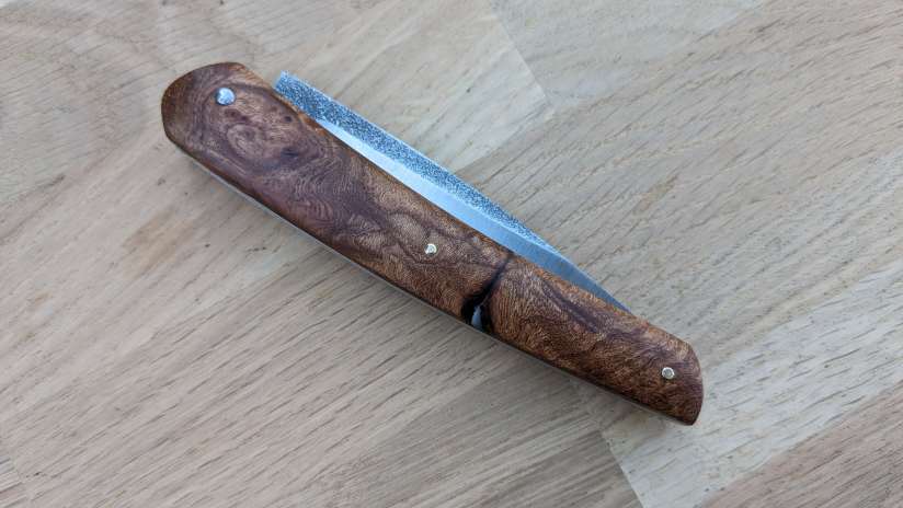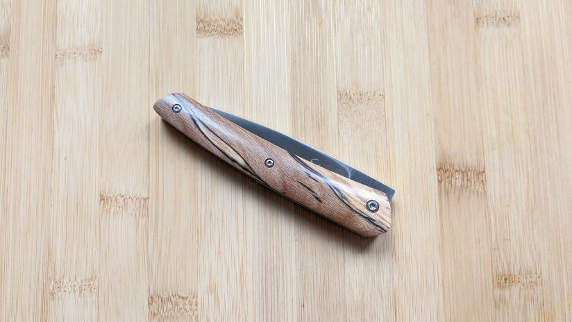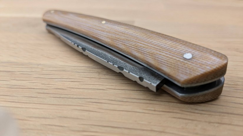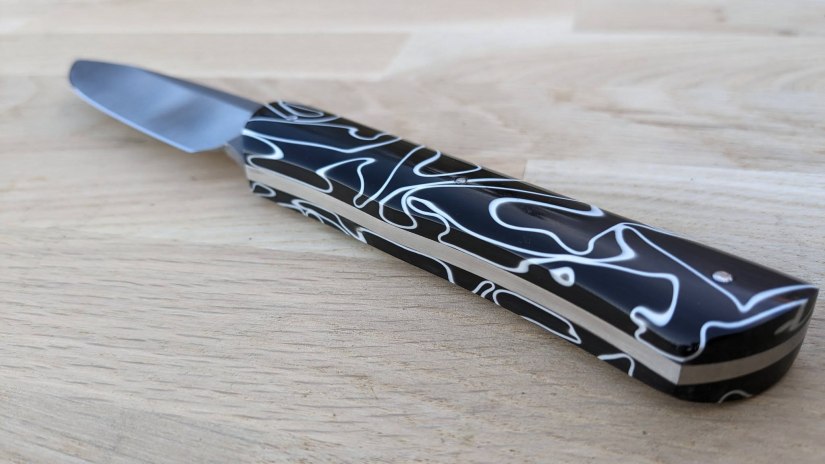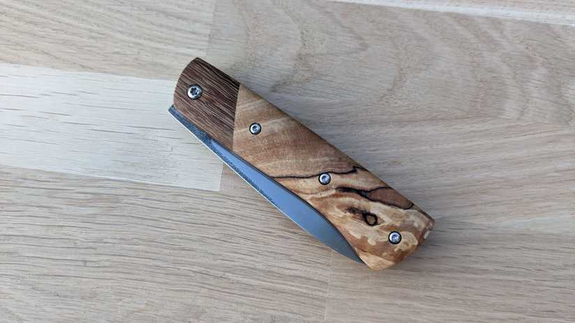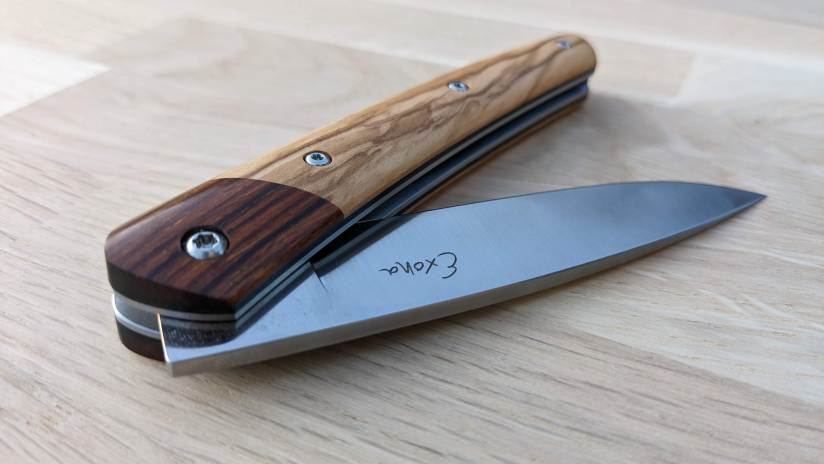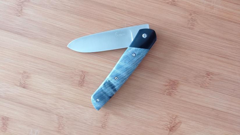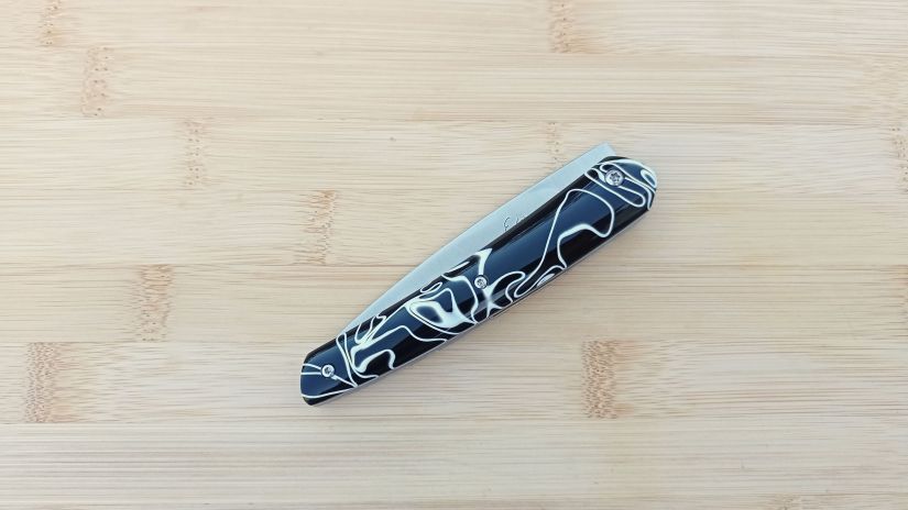 • Le savoir-faire Reflet de lame : ma conception et ma mise en œuvre des frictions fait que le resserrage de la vis se fait très rare. Basé sur le retour de mes clients, pour une utilisation quotidienne, le resserrage semble dépasser rarement les 3 fois par an