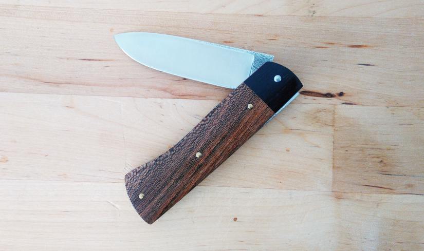• Le savoir-faire Reflet de lame : je fabrique mes ressorts pour qu’ils soient souples et agréables lors de l’ouverture de la lame, tout en veillant à une tenue ferme de son blocage : un couteau sécurisé pour lequel on ne s’arrache pas les doigts, ni à l’ouverture, ni à la fermeture 🙂