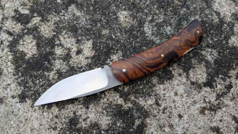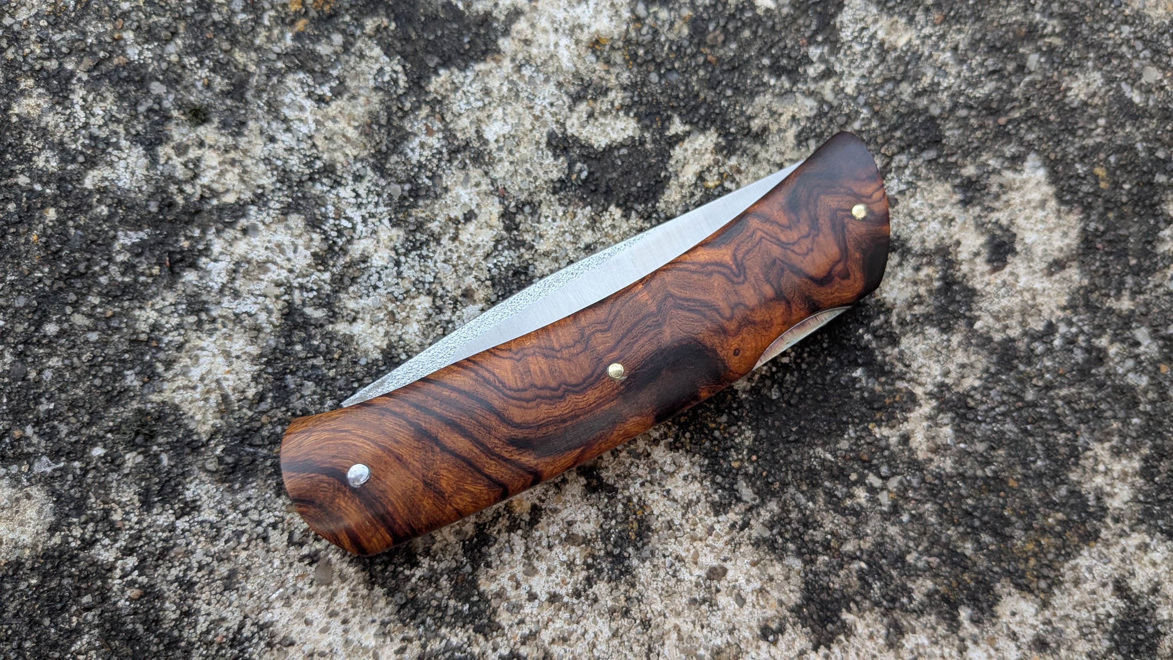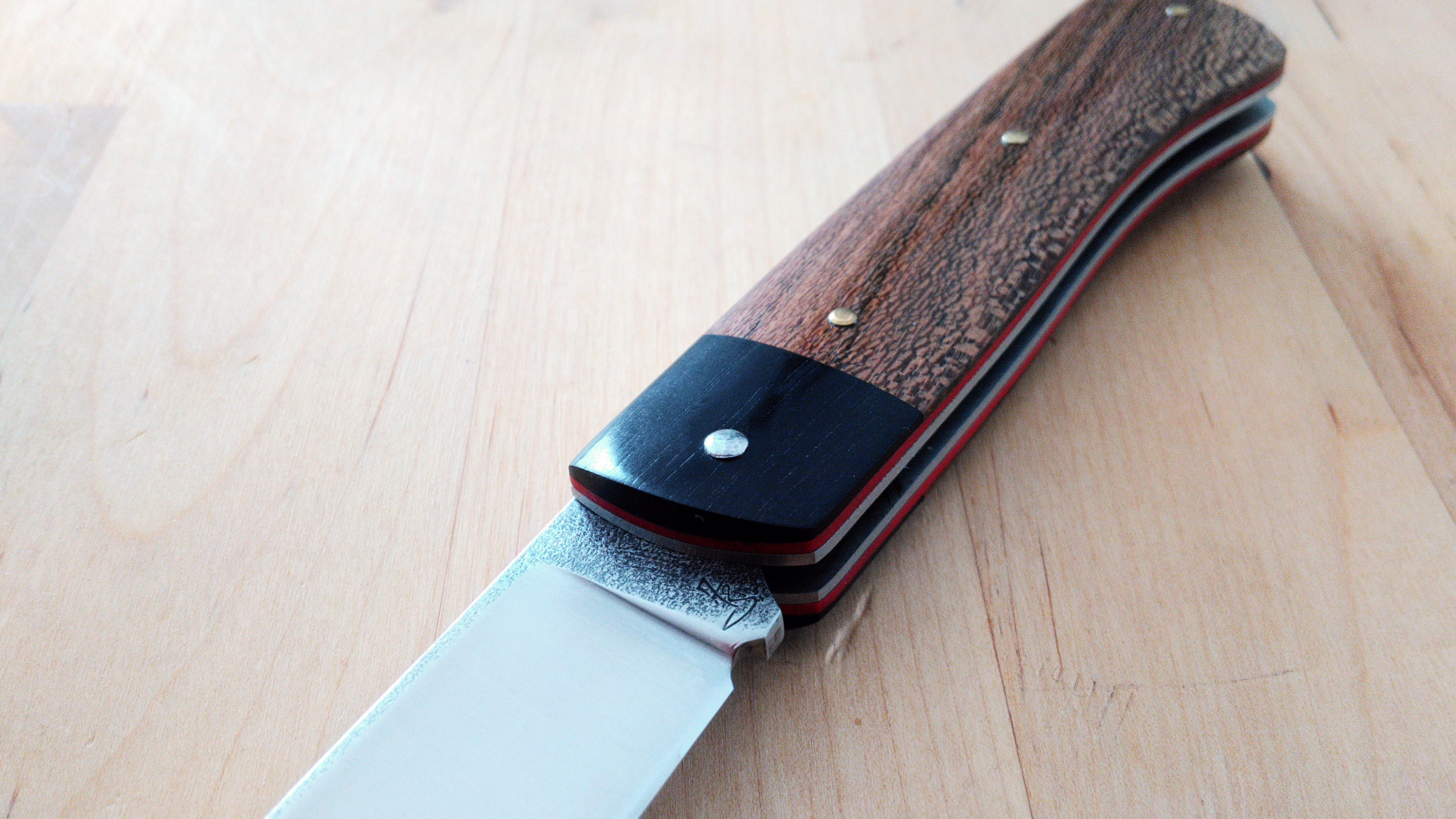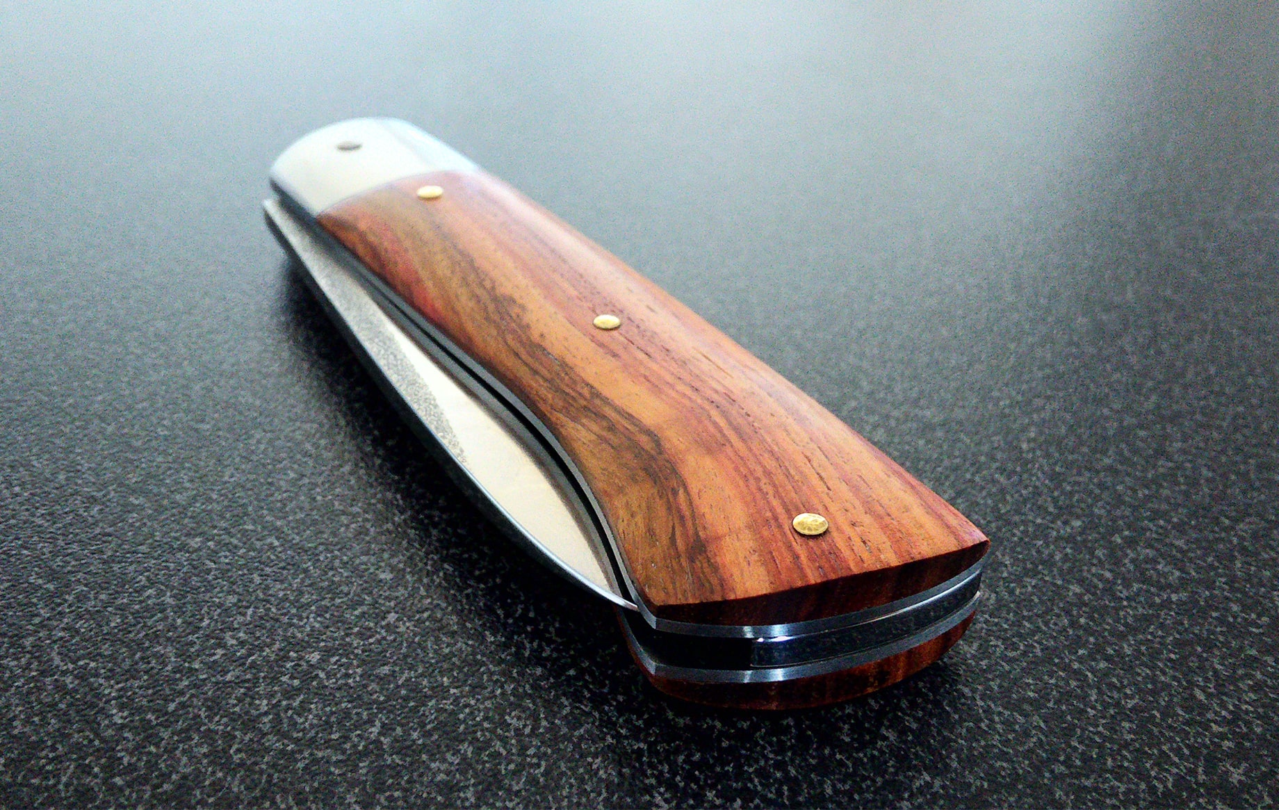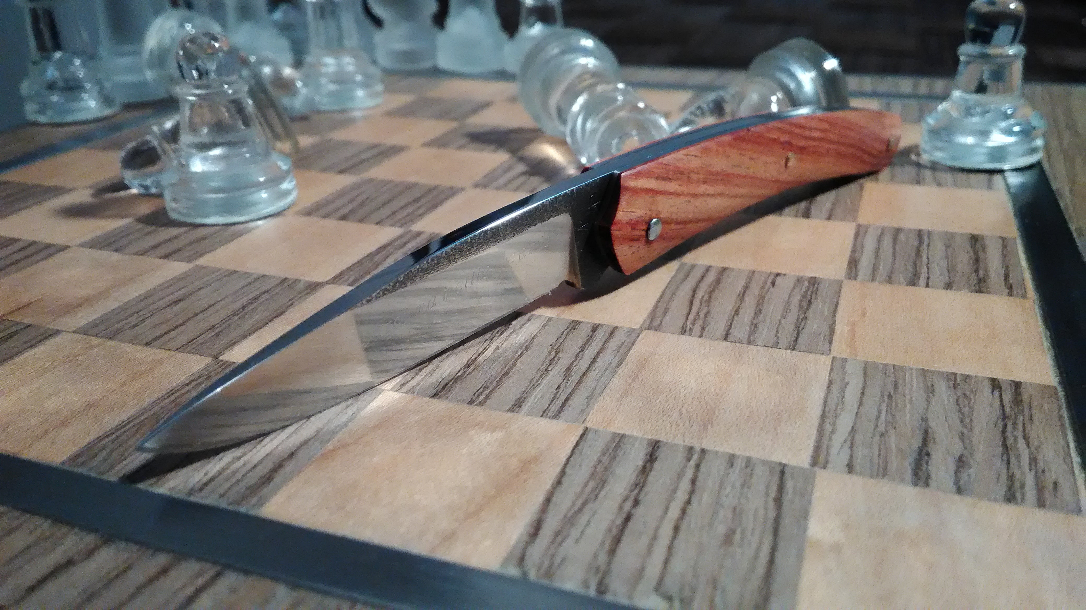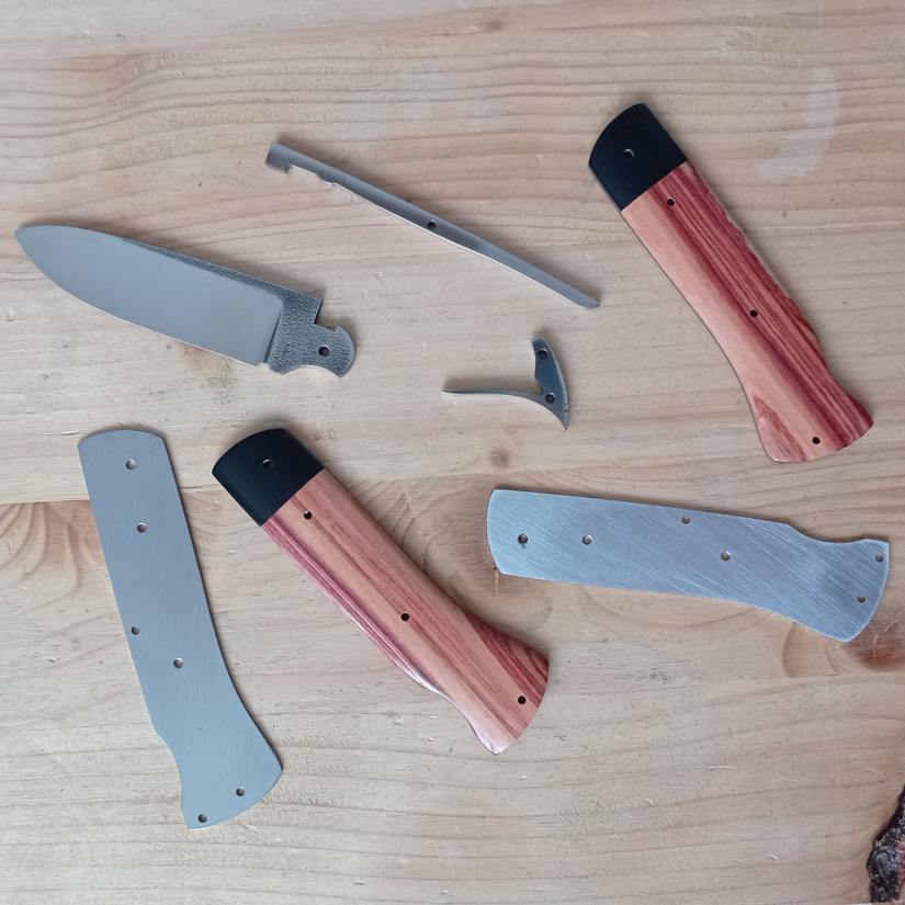 Chaque couteau est réalisé entièrement à l’atelier. Je procède moi-même à la fabrication des lames, des émoutures, des mécanismes, des traitements thermiques…