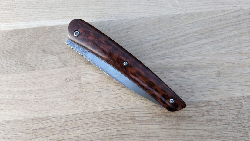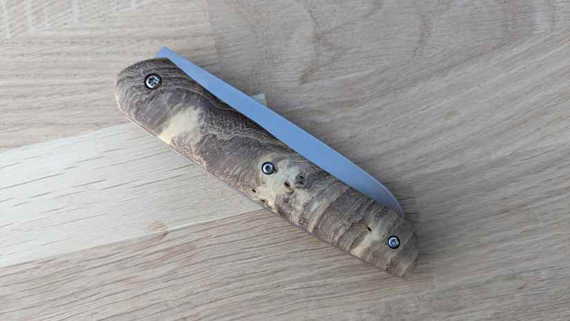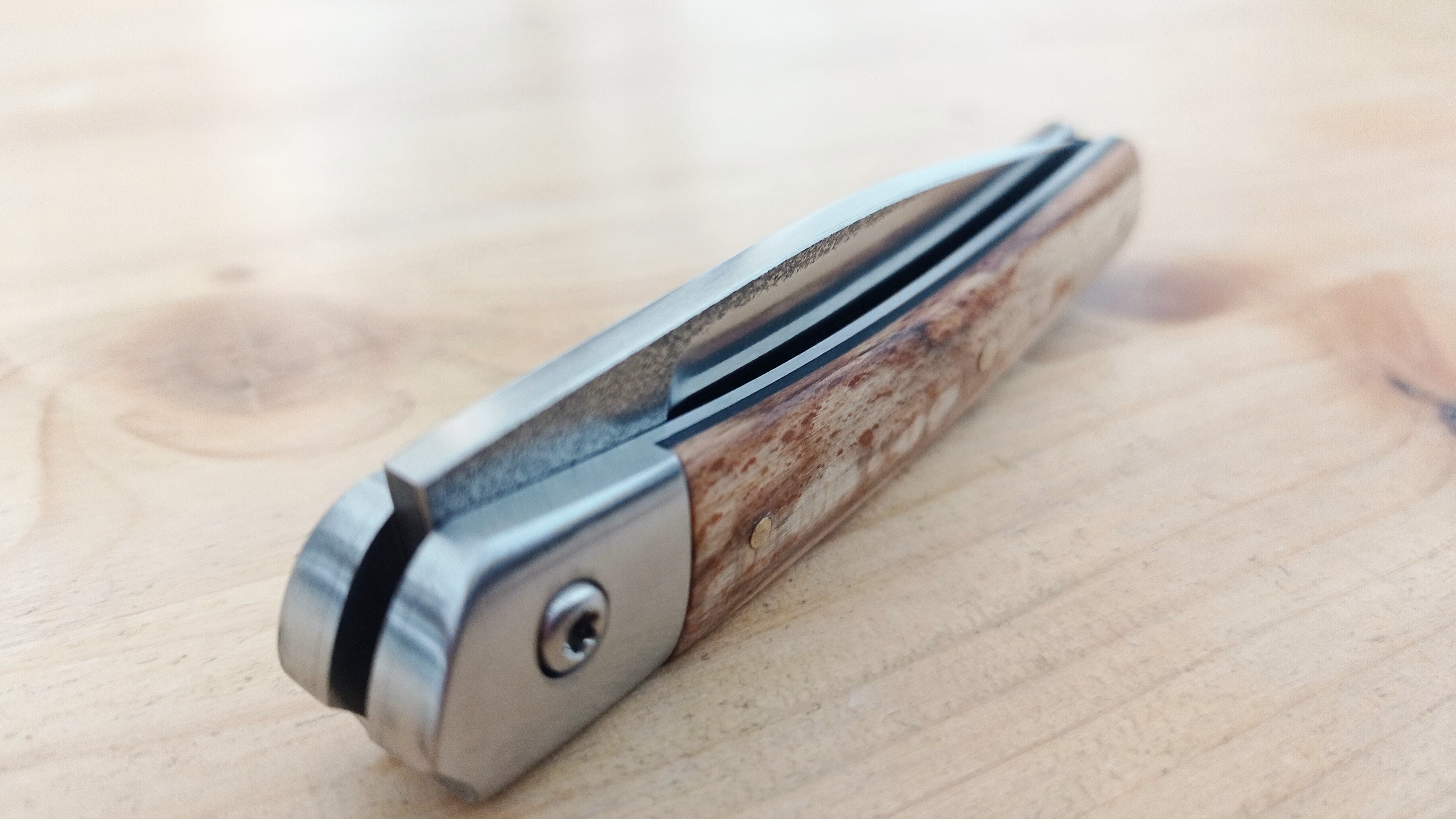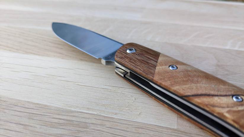 Je propose par défaut mes couteaux en cran forcé, une mécanique classique et fiable.