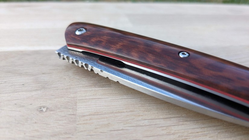 • La lame ne peut pas se refermer toute seule mais ce mécanisme demande parfois de devoir resserrer la lame, 1 à 5 fois par an selon les usages, pour conserver cette sécurité.
